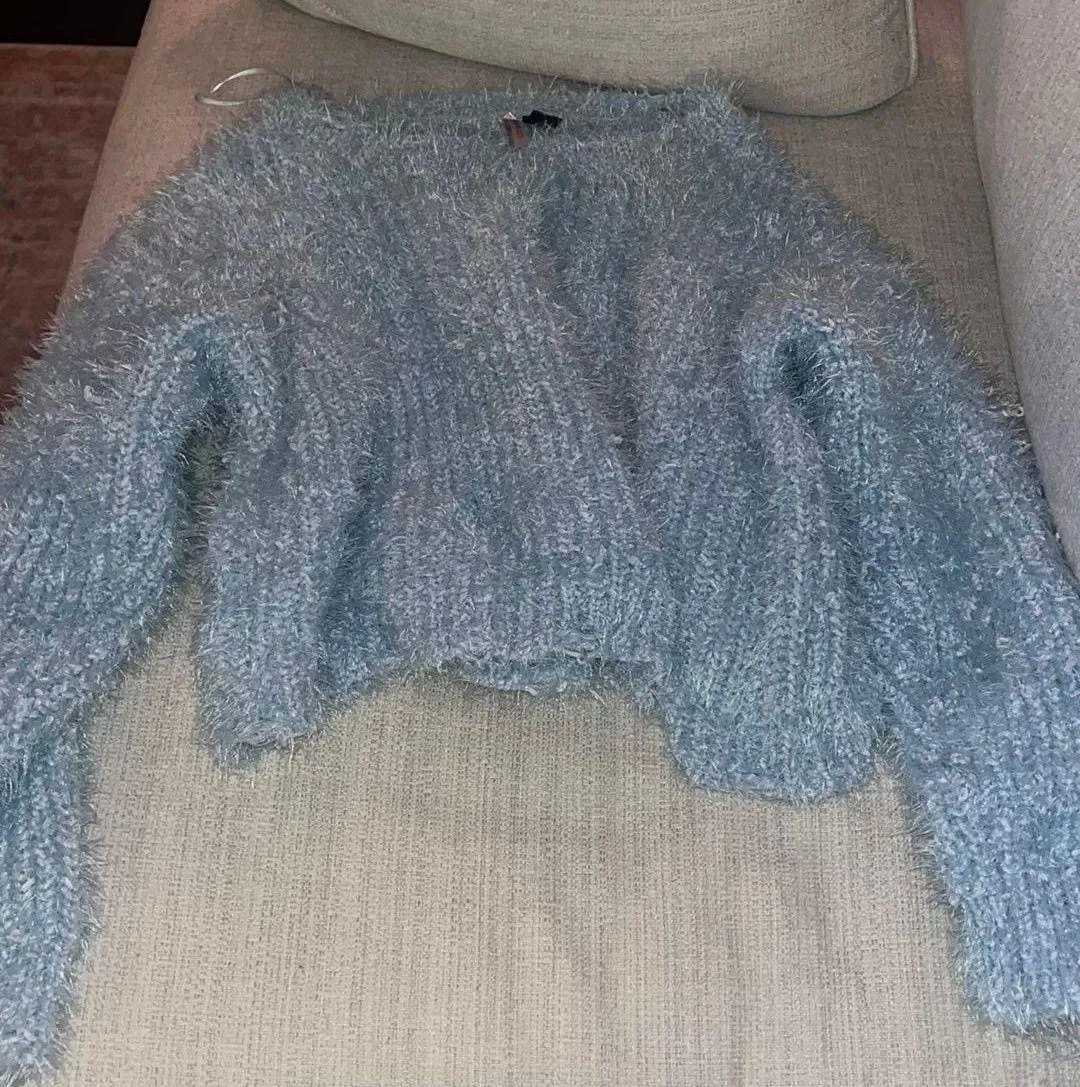 Blue Fuzzy Cropped Sweater Size XL - $11 (75% Off Retail) - From Rochelle