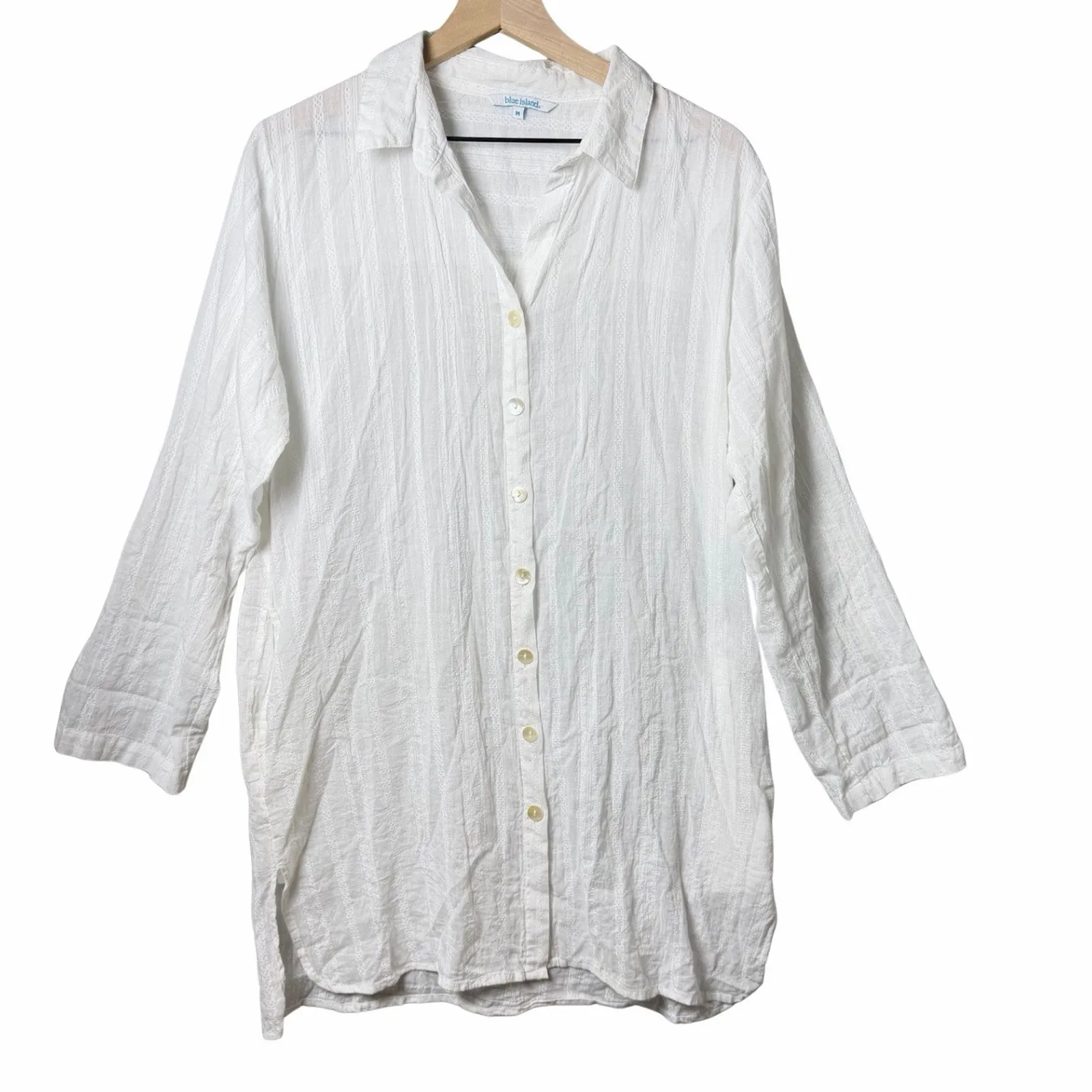 In good preowned condition. Has some light wear from normal use but overall has a lot of life left. Breezy and effortless, this Blue Island gauze tunic is perfect for layering over your swimsuit or pairing with denim shorts for a coastal-chic look. Lightweight cotton fabric keeps you cool and comfortable for sunny days by the shore. Details: • 100% cotton gauze – airy and soft • Long sleeves with relaxed fit • Pullover tunic style • Versatile as a swim cover-up or casual top • Crisp white – timeless and beachy • Size M Keywords: beach cover up, cotton gauze tunic, resort wear, summer top, boho coastal style, Blue Island, white blouse, lightweight vacation outfit, casual beachwear, swim cover up