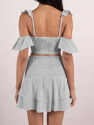 Top and skirt set with black/grey and white stripes Top is large (fits like medium) and skirt is med... Show more