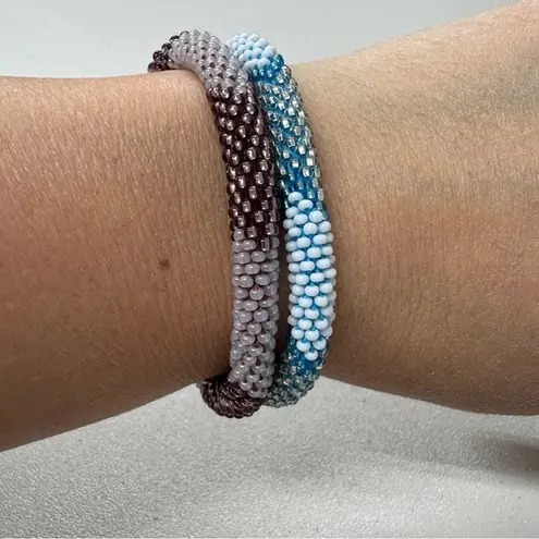 Blue Purple Glass Bead Stretch Bracelet Set of Two Womens Jewelry - $20 - From Lisa