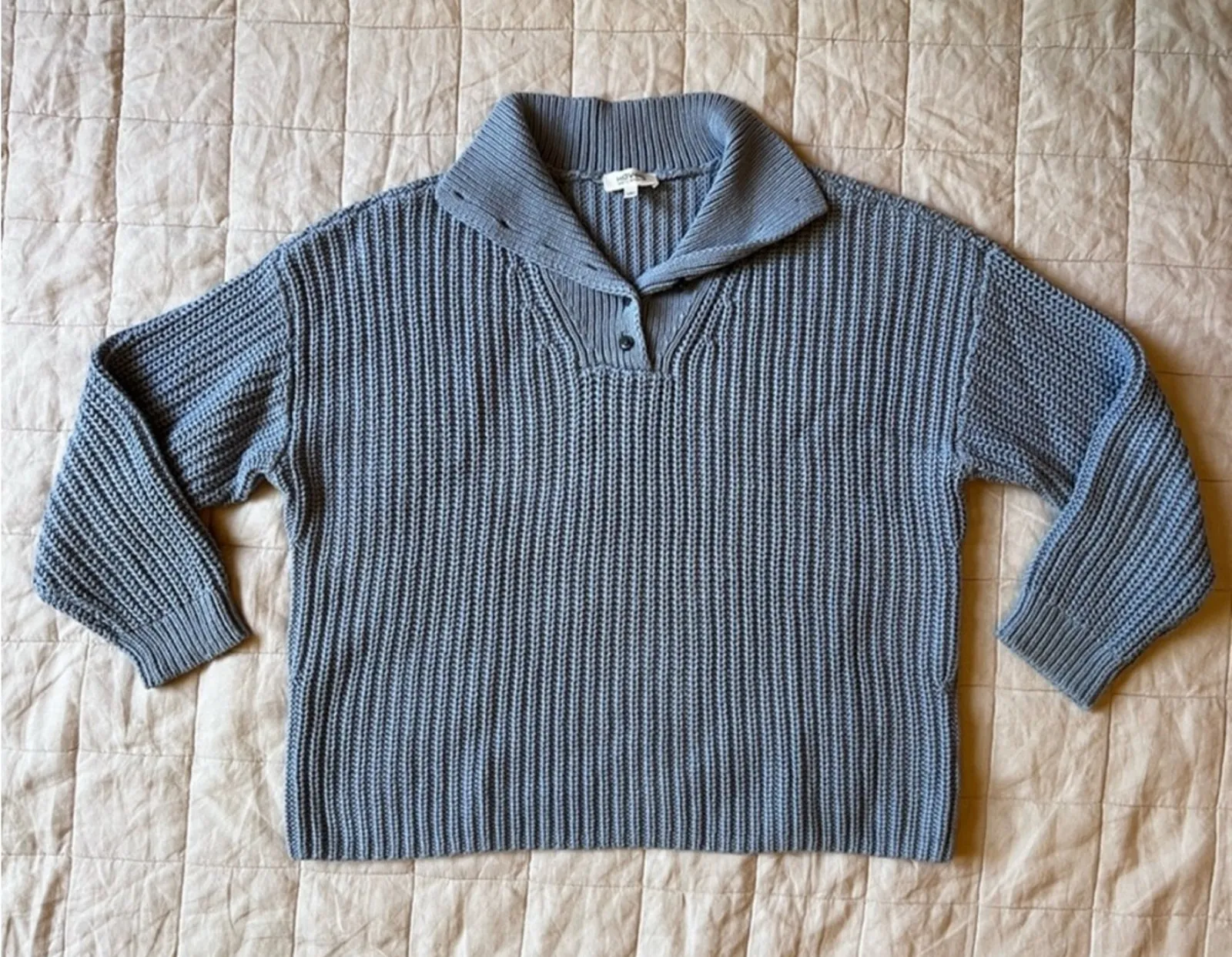 Haven Well Within Blue Buttoned Collar V Neck Knit Sweater Fishermancore sailor beachy coastal - M (... Show more