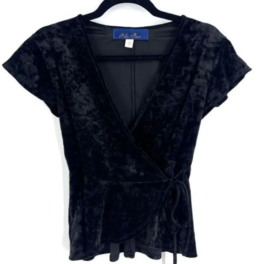 Blue Rain women’s black velvet wrap top blouse shirt peplum XS Xsmall Black velvet fabric wrap top.... Show more