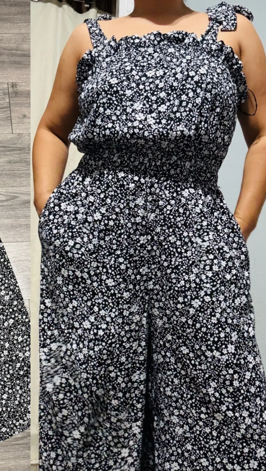 Preowned - Good condition Measurements: • Bust: 16 inches (unstretched) • Waist: 26 inches (unstretched) Department: Women Type: One-Piece Style: Jumpsuit Fabric Type: Rayon Theme: Bohemian Material: 100% Rayon Sleeve Length: Sleeveless Pattern: Floral Occasion: Casual, Party/Cocktail, Travel Set Includes: Jumpsuit Number of Pieces: 1 Piece Keywords: Blue Rair jumpsuit, floral jumpsuit, wide leg jumpsuit, crop jumpsuit, tie shoulder jumpsuit, smocked waist jumpsuit, womens jumpsuit size L, summer jumpsuit, casual jumpsuit, boho jumpsuit, black floral jumpsuit, rayon jumpsuit, lined jumpsuit