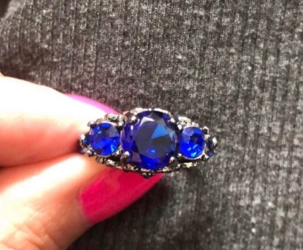Blue Stone Ring Blackened 925 SS - $26 - From Edward