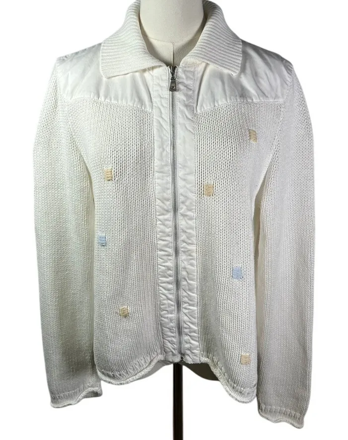Blue Willi's Life Danish Design White Cotton Knit Full Zip Up Jacket L Pastel Measurements: • Pit t... Show more