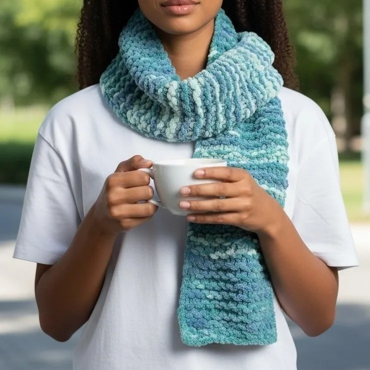 Blue Y2K Vintage Chunky Knitted Cottage Granny Swan Cozy Wrap Shawl Scarf OS - $29 - From LimenDime