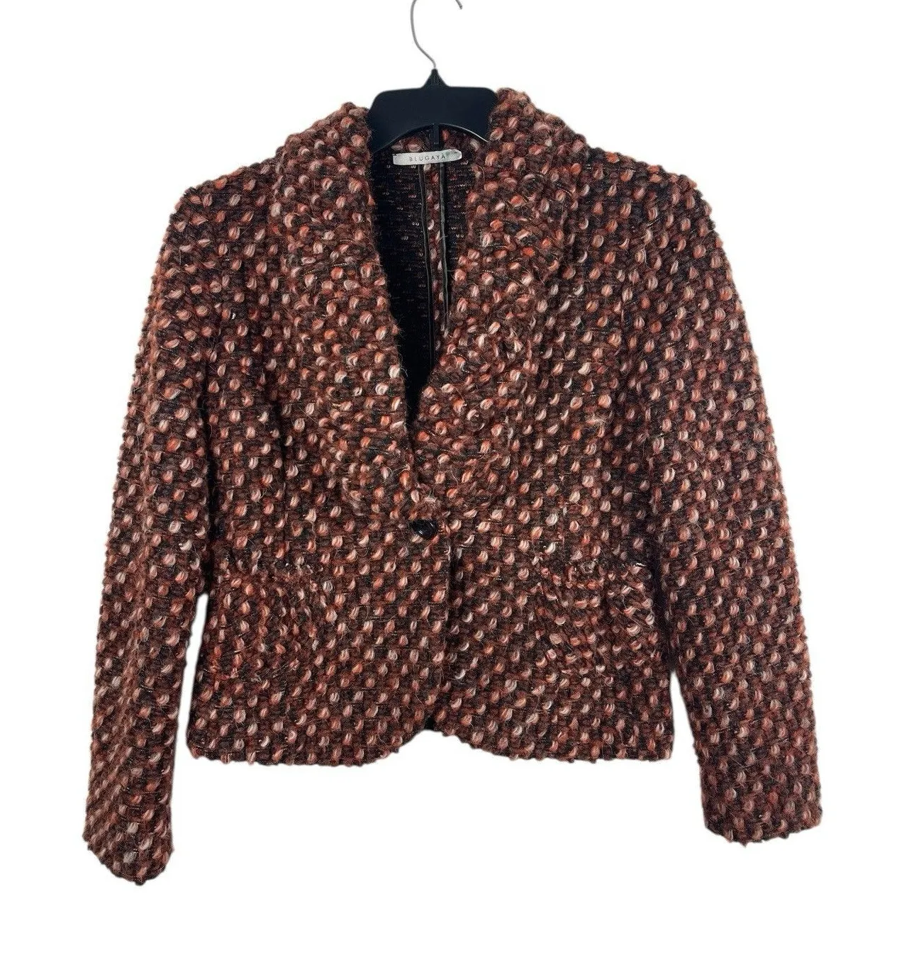 The Blugayà Made in Italy Wool Blend Bouclé Textured Blazer in Black Orange is a stylish and versati... Show more