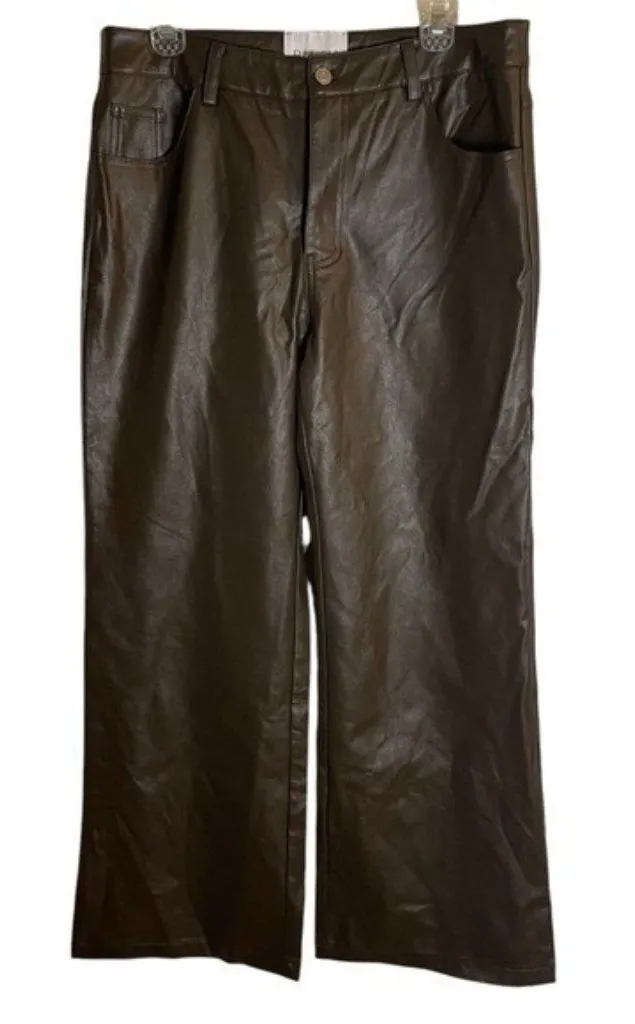 NEW BLUSH Brown Pleather Low Rise Pants Size Large 17" width 41" length 29" inseam (pants legs width... Show more
