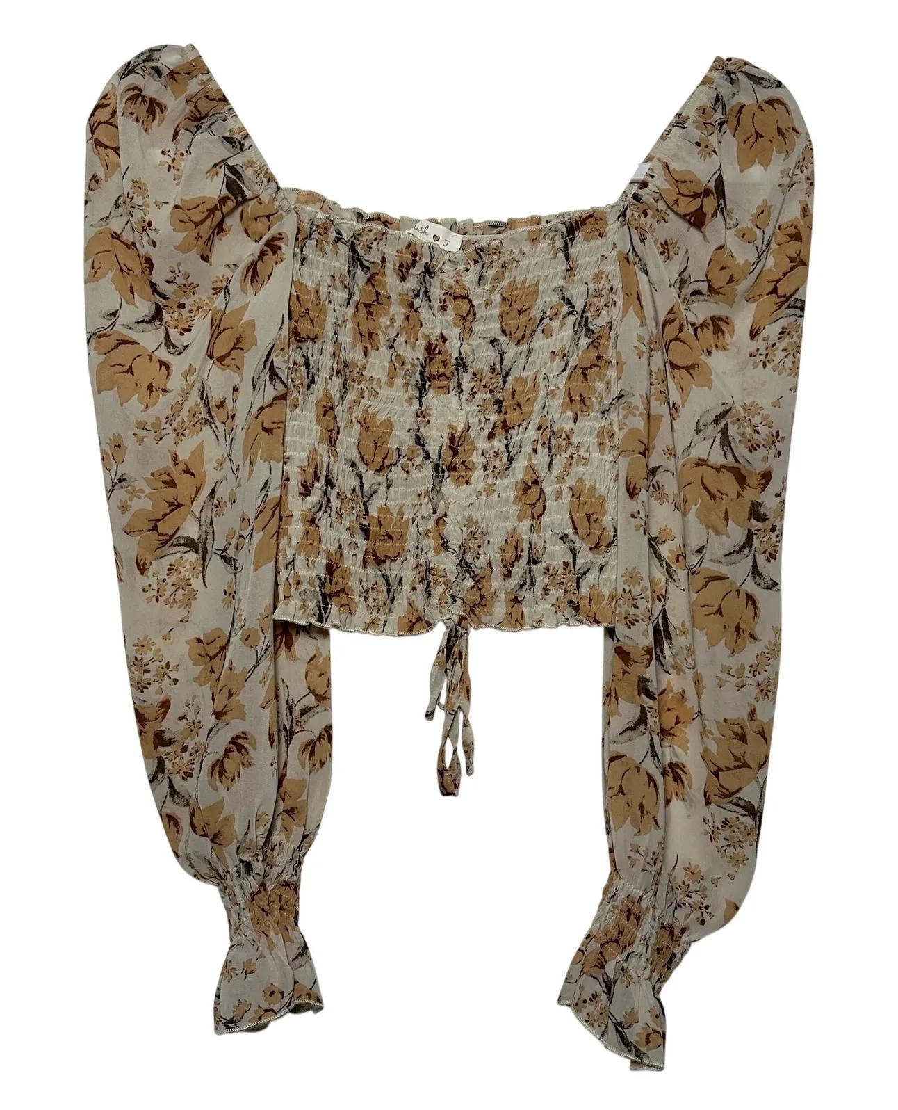 A charming Blush J floral print crop top designed with a square neckline and full-length puffed sleeves. This top features a flattering smocked bodice for a comfortable and stretchy fit, complete with a tie front detail. The sleeves are finished with elasticized cuffs. Measurements: • Armpit to Armpit: 11" (stretch 15") • Length: 14" Type: Blouse Department: Women Style: Cropped Material: 100% Polyester Neckline: Square Neck Sleeve Length: Long Sleeve Sleeve Type: Puff Sleeve Pattern: Floral Accents: Tasseled Features: Stretch Fit: Regular Fabric Type: Chiffon Occasion: Casual, Party/Cocktail Closure: Tie Season: Spring, Summer, Fall Keywords: floral print, square neck, smocked, crop top, long sleeve, tie front, puffed sleeves, boho, feminine, lightweight, casual, chic Fast shipper- most items ship within 1 day!