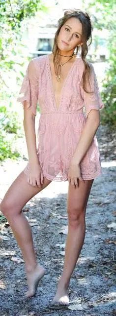 Blush Lace Deep V Romper Pink - $19 (63% Off Retail) - From AnnaClaire