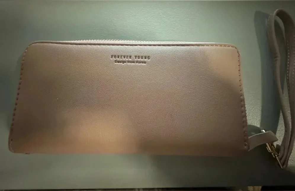 NWOT blush, pink, forever young wallet with wristlet. See last two pictures for wear on back two corners from sitting. Third from the end is a little rare on the front corner as well.