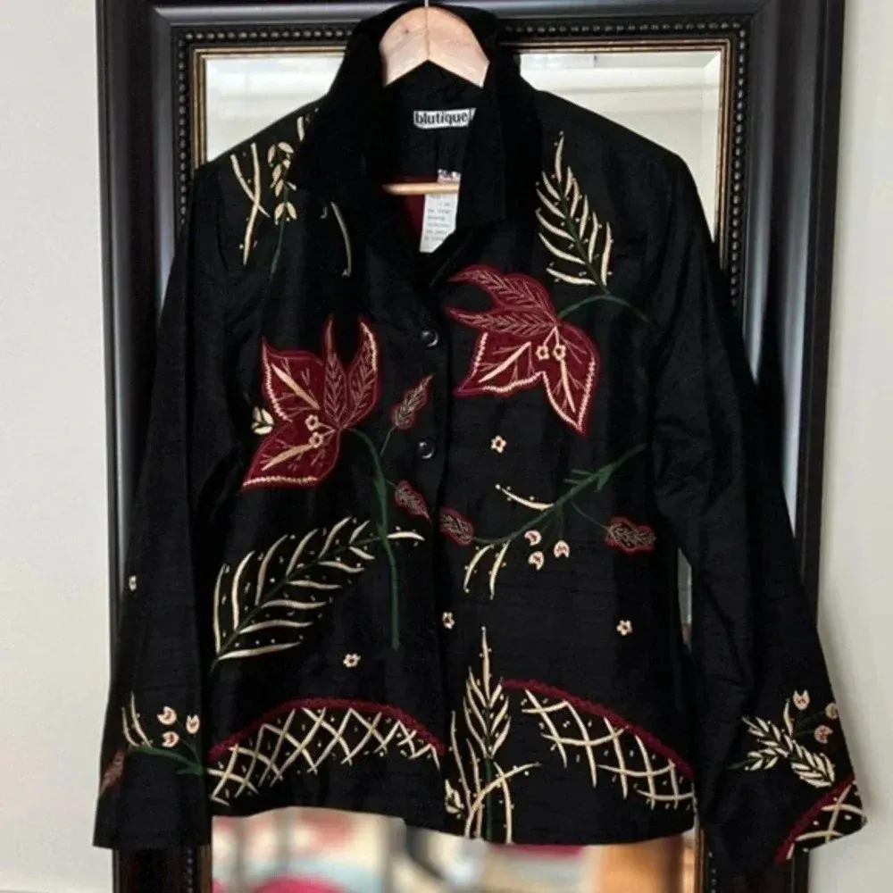 - Blutique Embroidery Button Down Silk Jacket Size Large‎ NWT Red - $40 New With Tags - From Froliqie