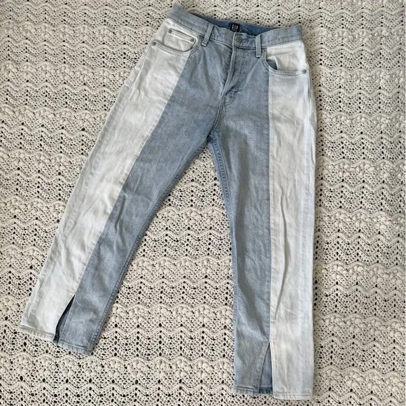 Gap Two Tone High Waisted Straight Leg Denim Jeans in both Light and Medium Wash. High rise. Two ton... Show more