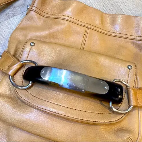 BMakowsky Tan Leather Crossbody Bag with Silver and Wood Detail Leopard Lining - $24 - From Dana