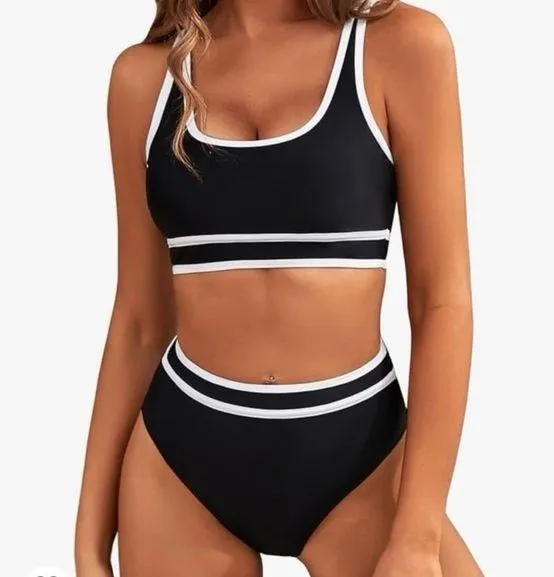 BMJL Womens High Waisted Bikini Sporty Two Piece Swimsuits Color Block Cheeky High Cut Size Medium... Show more
