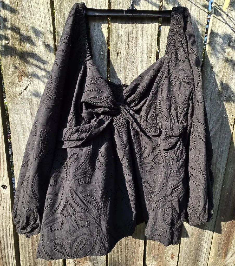 Banana Republic Eyelet Puff Sleeves Blouse, black, size Large Black - $28 - From Christine