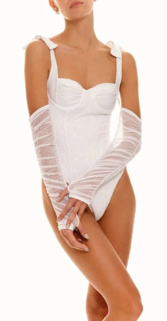 Self: 72% polyamide, 28% elastane Lining: 81% polyester, 19% elastane Made in Colombia Hand wash only Pull-on styling with adjustable shoulder ties Removable, adjustable mesh sleeves Unpadded underwire bust Exterior textured sequined fabric and interior tropical design Cheeky cut evolve Style No. BOAM-WX104 Manufacturer Style No. FPC424 Color: White MSRP: $230 Size & Fit Jasmine is 5' 9'' and is wearing a size S Waist 24'' Bust 32'' Hips 34'' Features: • Totally Sold out on Revolve! Size: Womens M Condition: New With Tags tags: swim, beach, vacation, swimsuit, pool, travel, swimwear, summer, designer, st. tropaz. south beach, miami, shopbop, pilyq, wedding, bridal, bride, honeymoon
