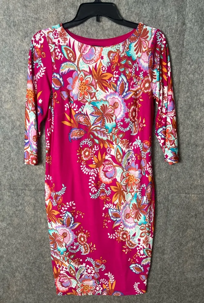 Bob Mackie wearable art Woman XXS Vibrant Floral 3/4 Sleeve Floral Dress Nwt Pink - $30 New With Tags - From Tita