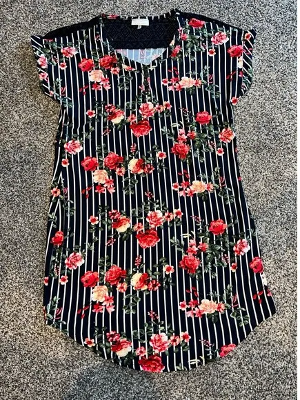 Bobbie & Brooks Women's‎ Navy Blue/white red roses short sleeve dress size large - $9 - From Rebecca