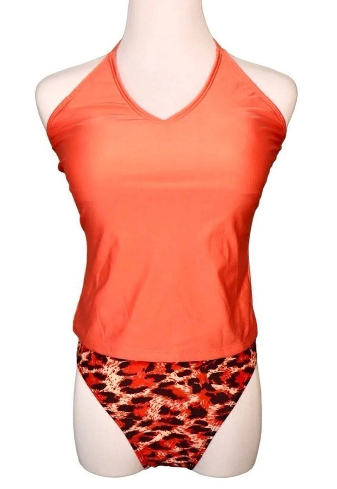 Bobbie Brooks Cheetah Print Solid Tankini Removable Pads 2pc Swimsuit sz MEDIUM. High waist and leg... Show more
