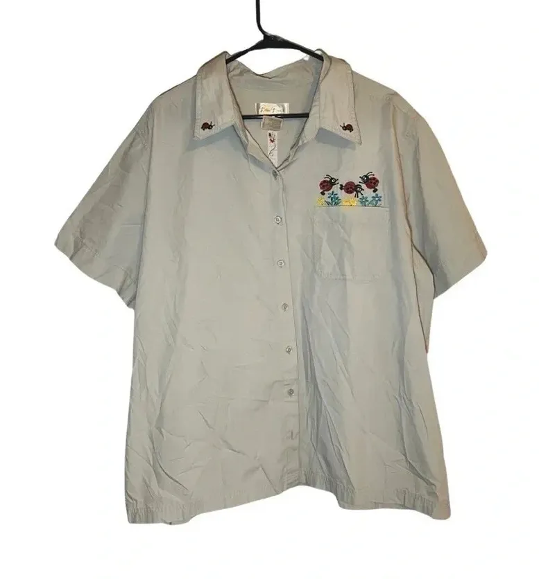 Bobbie Brooks Vintage Embroidered Lady Bug Cotton Short Sleeve‎ Shirt 22W/24W - $20 - From Sam