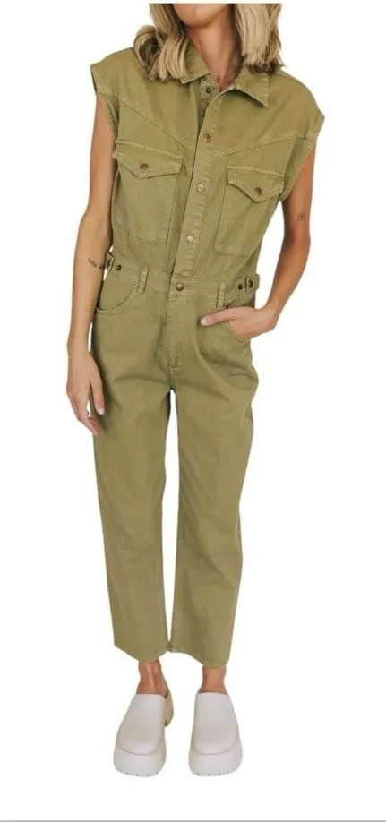This stylish women's jumpsuit by Bobbles & Lace is perfect for any occasion, whether you're traveling or enjoying a casual day out. The sleeveless design and collared neckline add a touch of sophistication, while the snap closure and adjustable waist make it easy to wear and comfortable all day long. Made from high-quality cotton denim, this jumpsuit is durable and breathable, with stretch for added comfort. The heavyweight fabric and straight leg style make it suitable for all seasons, whether you're enjoying the outdoors or exploring the city. With its bohemian, hippie, and preppy themes, this jumpsuit is a must-have for any fashion-forward woman. Women ladies junior teenager see pictures for measurements gently used with no flaws Offers welcome.Bundle and save! Smoke free pet free home. Ships out next business day Thank you for checking out my closet 65