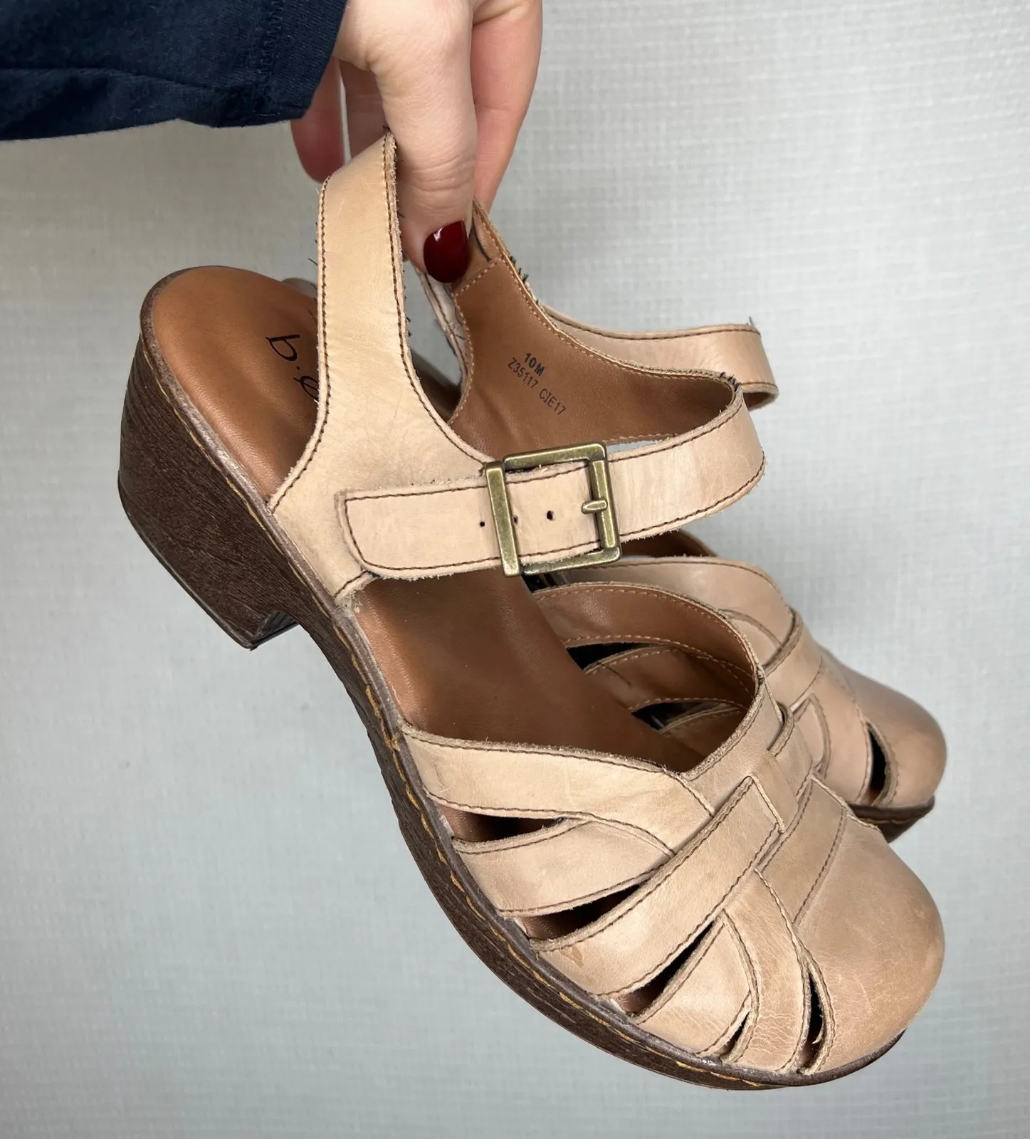BOC Born Concept leather slingback wedge sandals in a tan hue. These sandals feature a stylish cutou... Show more