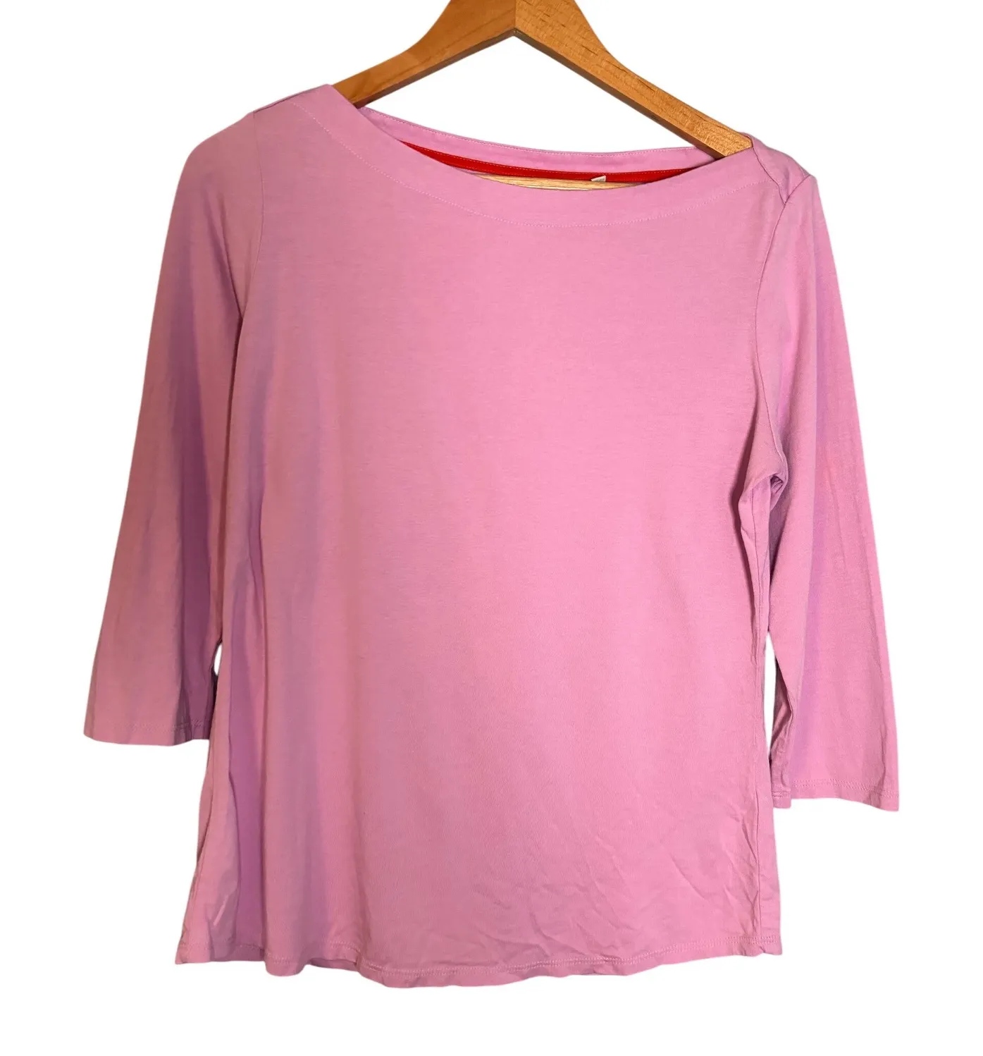 Size 12 Excellent preowned condition - no flaws 20" pit to pit 24" length Discover effortless charm in this delightful Boden boat neck top. The soft pink hue, reminiscent of a blooming garden, is enhanced by the elegant boat neckline and flattering 3/4 sleeves, offering a touch of sophisticated ease. The subtle texture of the fabric adds a refined touch, making this a perfect companion for a weekend brunch or a casual day out. Key words: preppy colorful Barbie cotton minimalist