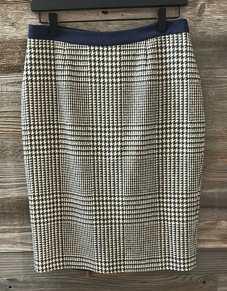 Boden British Tweed by Mallalieus Wool Pencil Skirt, Size 6R. This skirt is a beautiful shade of navy, brown and white tweed. 100% wool with a back zipper to close. This is fully lined with a navy liner. This is an excellent condition, with no signs of wear. Measurements taken flat. . Waist 14.5” Length 23”