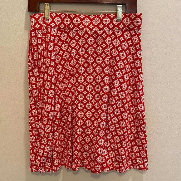 Boden Edie Jersey Swing Skirt w Pockets Red Pink Geometric Size 8 LONG - $26 - From Lysander