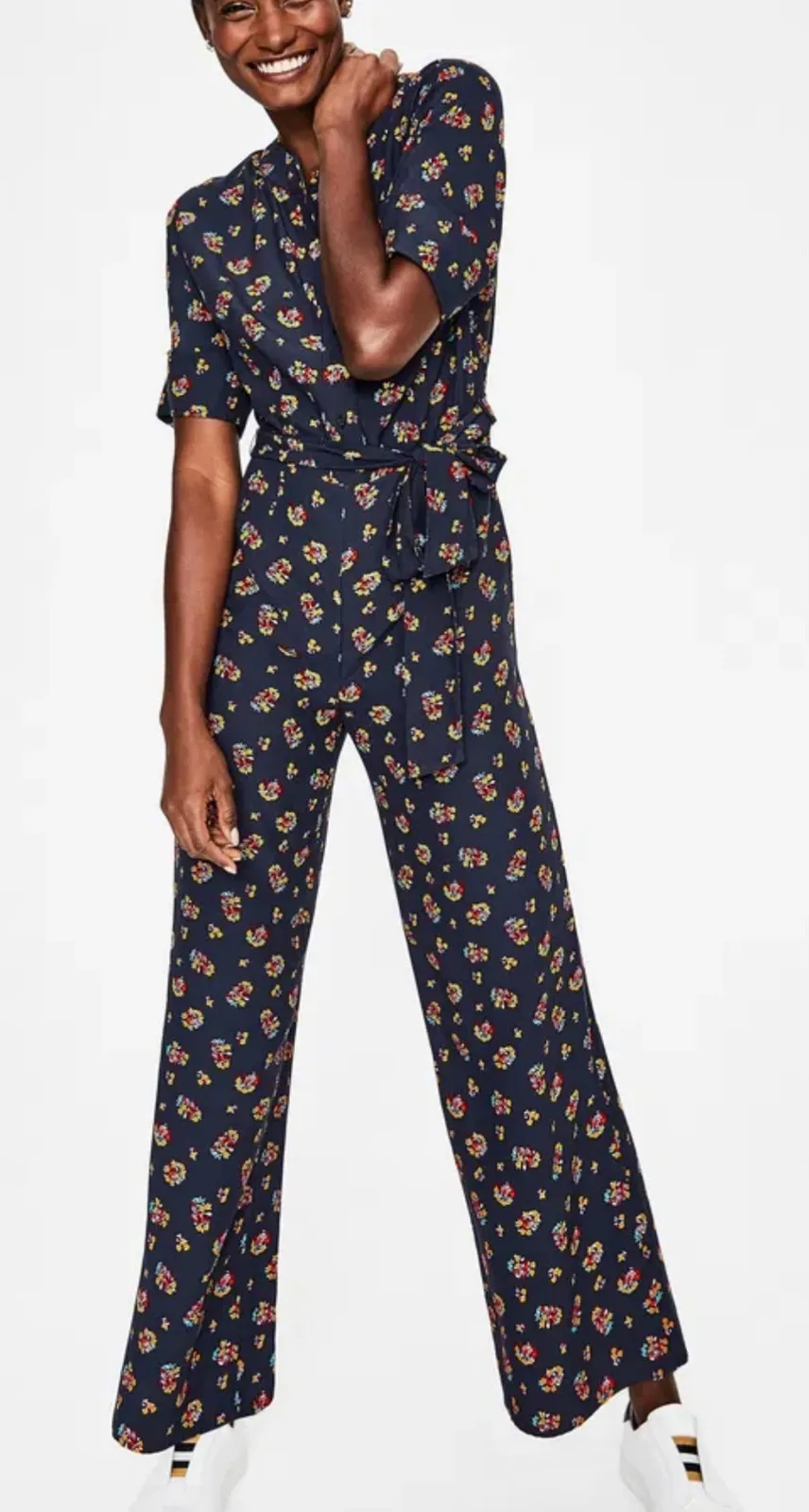 EUC with no rips, stains or flaws. No stretch. Measurements are approximate. Slight color variations may be seen in pictures due to lighting and camera settings. please see measurements to determine fit. Non smoking dog friendly home Color: Blue Department: Women Type: One-Piece Style: Jumpsuit Character Family: Boho Fabric Type: Woven Material: Viscose Pattern: Floral Sleeve Length: Short Sleeve Character: Bohemian, Chic, Casual, Elegant, Relaxed Occasion: Casual, Travel, Party/Cocktail Set Includes: Belt Number of Pieces: 1 Piece Keywords: floral jumpsuit, navy jumpsuit, wide leg jumpsuit, short sleeve jumpsuit, casual jumpsuit, bohemian jumpsuit, boho jumpsuit, floral print, summer jumpsuit, v-neck jumpsuit, belted jumpsuit, womens jumpsuit, spring jumpsuit Non smoking