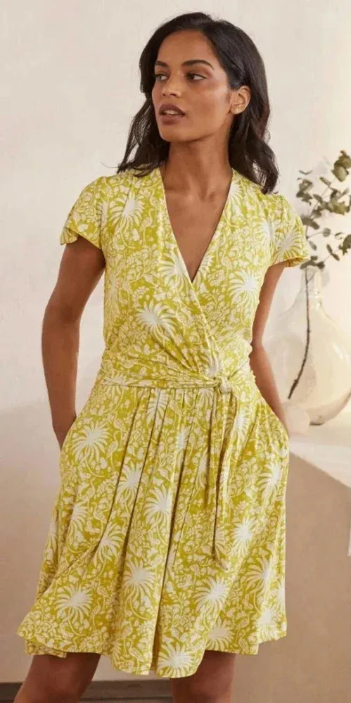 Boden Evangeline Jersey Wrap Dress in Yellow Floral Print. J0864 Ways to look instantly put together... Show more