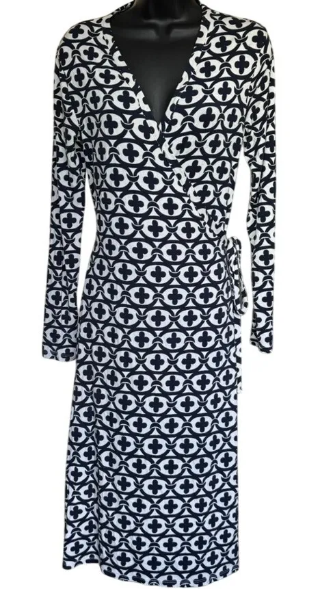 Boden Jersey Fit and Flare Wrap Dress‎ Size 6L Navy White Nautical Blue - $35 - From Jessica