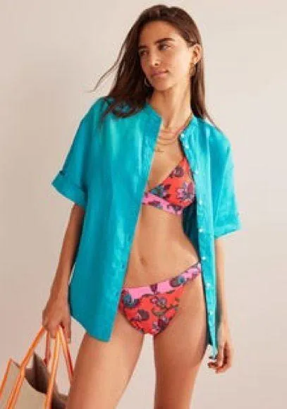 Boden Kimono Sleeve 100% Linen Shirt Swim Coverup Women's 14 Blue Resortwear NEW WITH TAGS. This relaxed-fit shirt is made from naturally breathable, recycled linen. It's shaped with a longer back hem for coverage and easy layering – wear yours on vacation as a beach coverup or in the city with denim. NEW WITH TAGS. Ships from a non-smoking home. Measurements: PTP: 25" Length: 29" Fabric: 100% linen, machine wash
