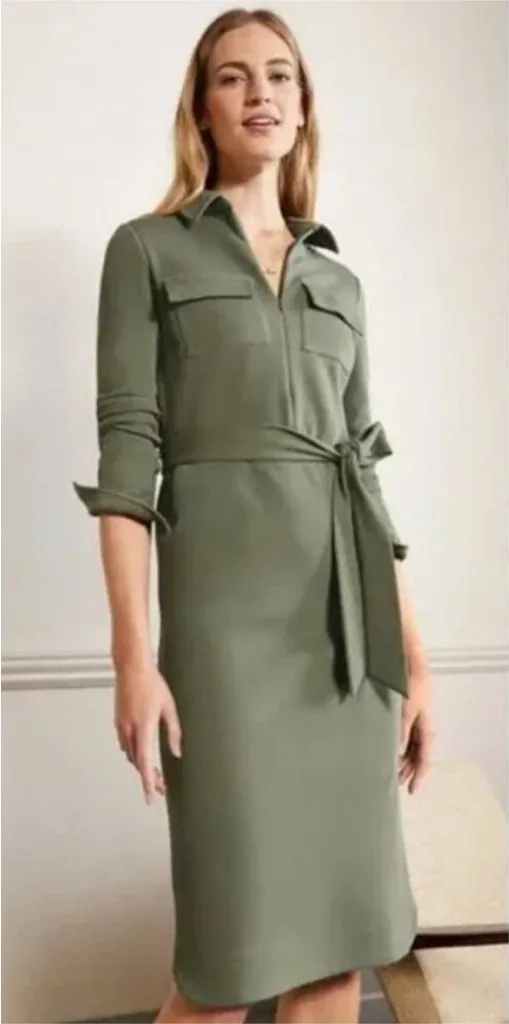 BODEN Ponte Midi Shirt Dress Alder Green Utility Belted US Size 10 - $59 - From Elizabeth