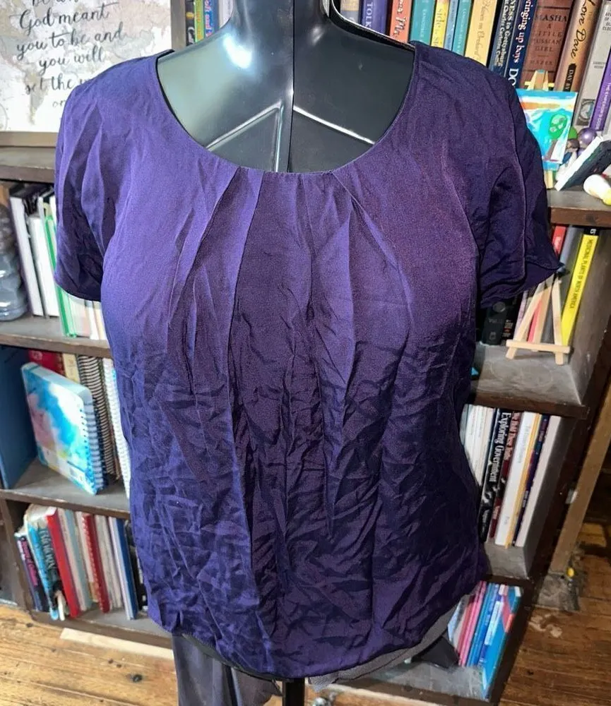 Boden purple, jewel tone, scoop neck, pintuck, lined, elegant, royalcore blouse. Pairs well with sla... Show more
