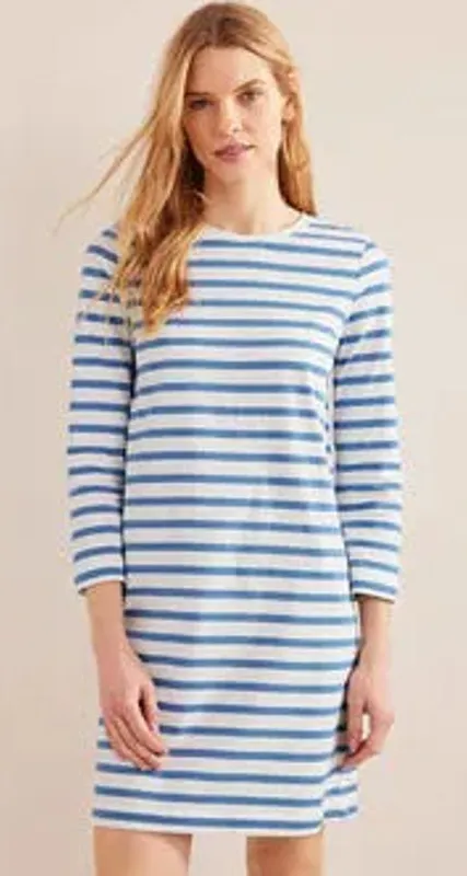 Boden Quarter Sleeve Striped Mini T Shirt Dress Blue & White Size 8R Retails for $125 Brand new with tags - perfect condition Features: Quarter Sleeve Breton Striped Mini Length Pullover Crew Neck 100% cotton Machine wash Approximate Measurements -laid flat / stretchy: Bust: 40” / armpit to armpit: 20” Length: 36”