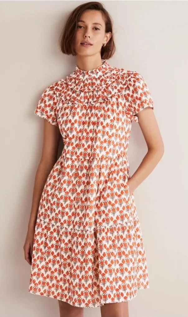 Boden Ruched Detail Metallic Dress Cream Red Poppy Gold US Size 12 - $65 - From Annie
