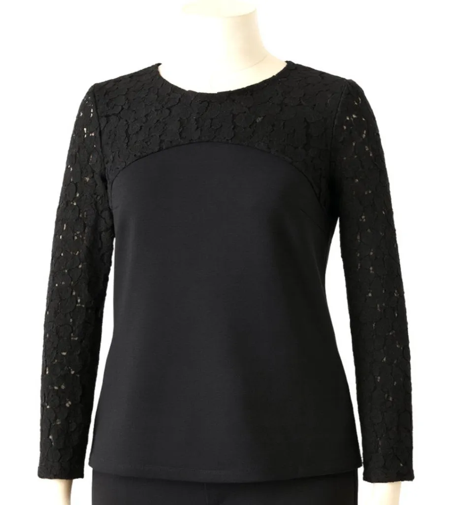 Boden Shirt Womens 2 Black Jersey Knit Sheer Lace Blouse Neutral Whimsigoth Womens Size 2 Round Neck Long Sleeve Sheer Lace Yoke & Arms Keyhole Button Back Pullover Style Cotton Polyamide Elastane Blend Stretch Career Going Out Party Versatile Casual Everyday Fairy Grunge Gothic Whimsygoth Minimalist Feminine Romantic Measurements are Approximate: Length 23" Armpit to Armpit 15" plus stretch Gently Used Condition. No Rips Tears or Stains (2667)