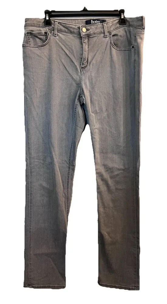 Elevate your denim game with these stylish Boden The Trafalgar Straight Leg Jeans in a chic gray color. These jeans are perfect for tall women with a size of 12L and feature a slimming stretch fabric that contours to your body for a flattering fit. The denim is of high quality and will keep you comfortable throughout the day, no matter the season. With a classic straight leg style and no pattern, these jeans are versatile and can be dressed up or down for any occasion. The jeans have several features, including slimming and stretch, which make them an ideal choice for those looking for a comfortable yet stylish pair of jeans. Get ready to rock with these Boden jeans!