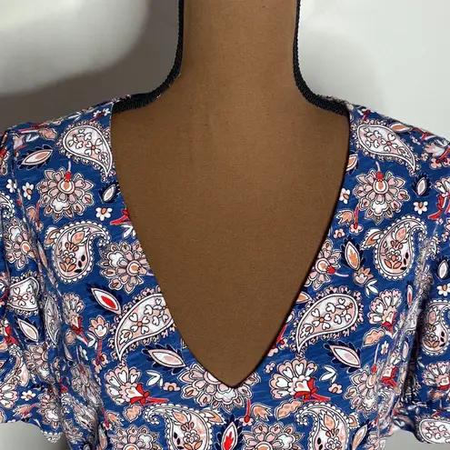 Boden V-Neck Jersey Slub Cotton Paisley Floral Print Mini Tea Dress NWT, size 12 Finished with an... Show more