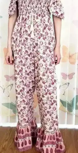 Bog Collective Off Shoulder Floral Jumpsuit Large Flare Cottagecore Artsy‎ Flowy Pink - $21 - From Autumn