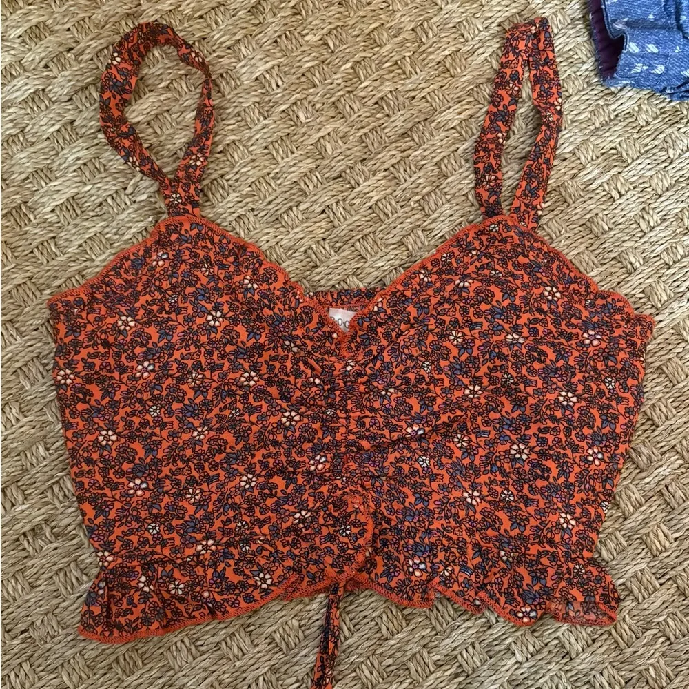 BOG Collective Women’s Cropped Red Floral Cinch Smocked Tank Top, Size Small - $14 - From Thrifterellas