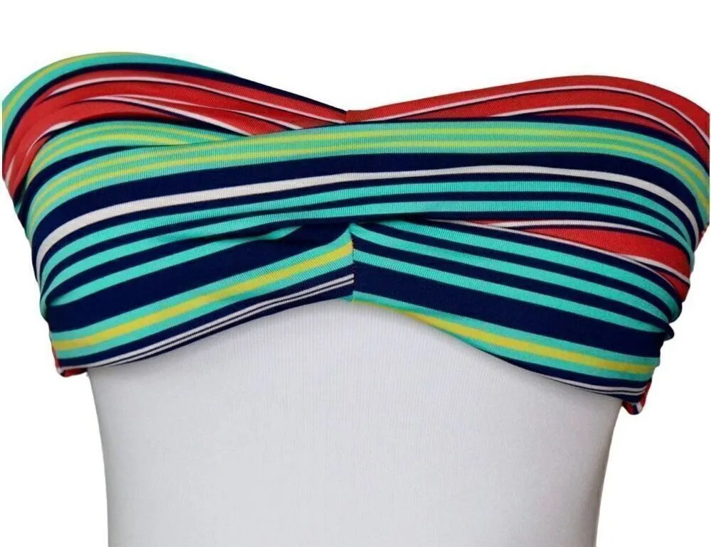 JC Penney Side Support Multi Striped Swimwear Bikini Top Small Modern Strapless. Fabric 94% Polyeste... Show more