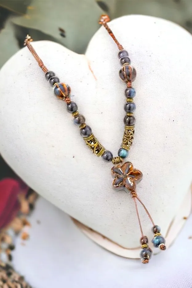 Bohemian Beaded‎ Ceramic Necklace Ethnic Style Flower Pendant Necklace Brown - $22 New With Tags - From Mon