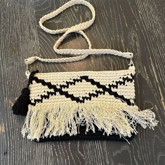 Elevate your everyday style with this chic sling bag, a perfect blend of functionality and fashion flair. The black and white woven exterior exudes a timeless elegance, while playful fringe accents add a touch of whimsy. Designed for the woman on-the-go, it features a secure zipper closure to keep your essentials safe. The braided strap offers a comfortable carry, ensuring this bag is as practical as it is stylish. Inside, a light lining makes finding your items a breeze. This pre-owned piece is waiting to become your new favorite accessory, seamlessly transitioning from day to night with ease. Brand: Unbranded Exterior material: Woven Style: Sling Bag Exterior color: Black and White Department: Women Lining color: Light Closure: Zipper Features: Fringe, Braided Strap, Woven Pattern Accents: Fringe