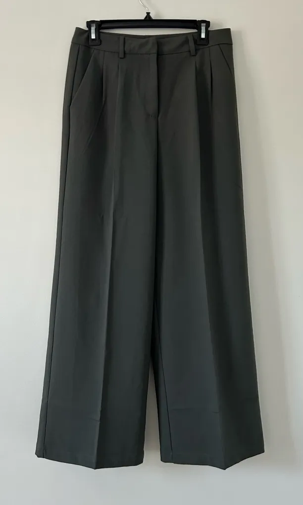 Bohme Dark Green High Rise Wide Leg Pleated Front Trouser Pants Color Dark Green Size Small Fabric... Show more