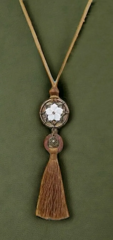 Boho Ladies 1 Pendant Necklace Round Hollow Set‎ White Flower Coffee Color Tan - $13 New With Tags - From Mon