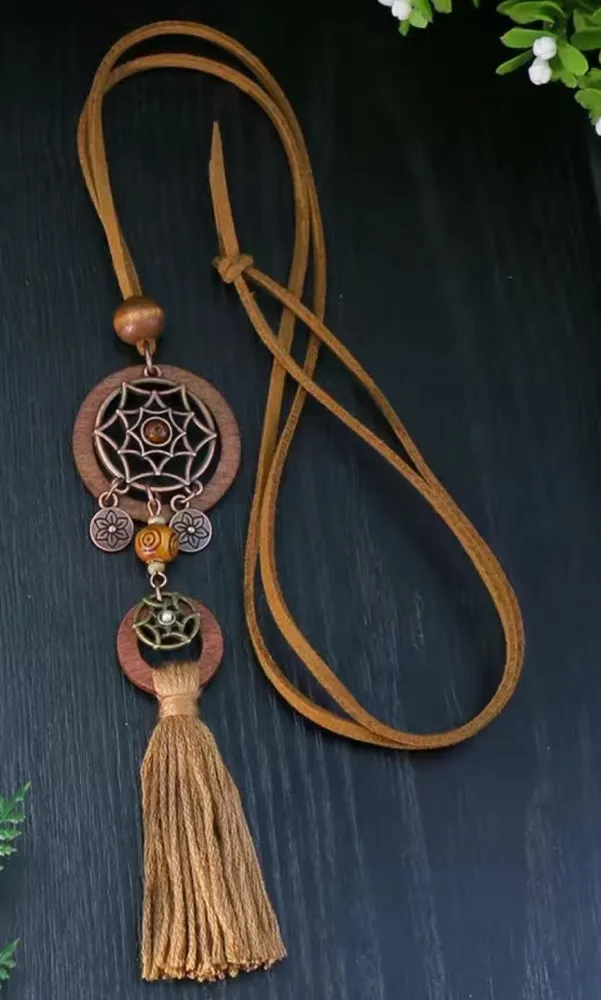 Boho Ladies 1 Pendant‎ Wooden Cut Out Necklace Round Hollow Set White Flower Tan - $15 New With Tags - From Mon