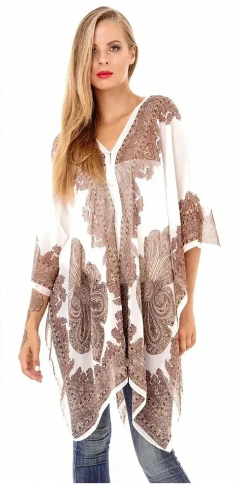 New chiffon bohemian style poncho shawl/ coverup Wear it 2 ways as seen in photos Pearl button ac... Show more